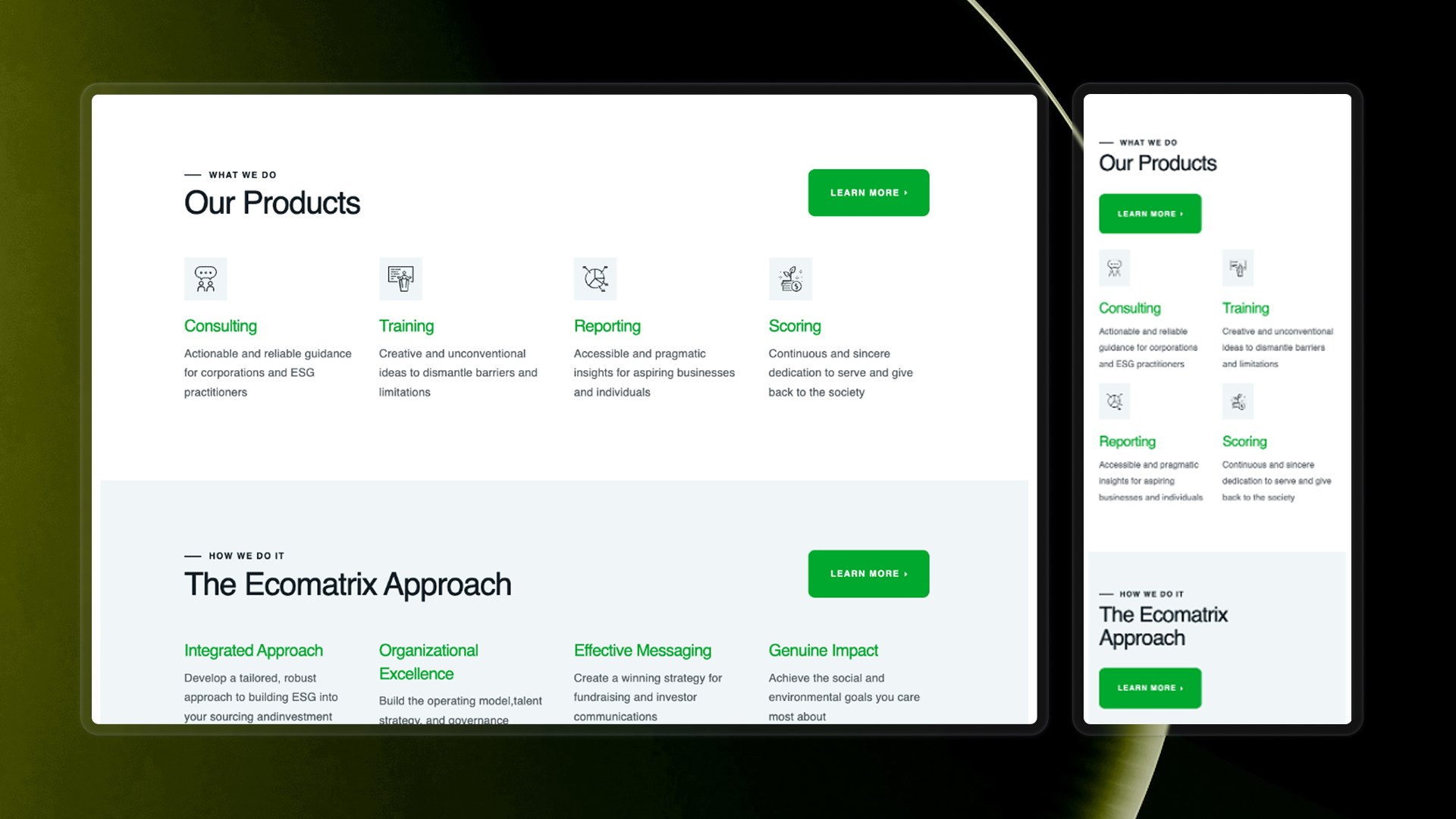 EcoMatrix needed to communicate complex ESG solutions clearly and engagingly. Their previous materials lacked a cohesive digital identity, so the challenge was to design a site that simplified technical content while building trust with investors and partners.
